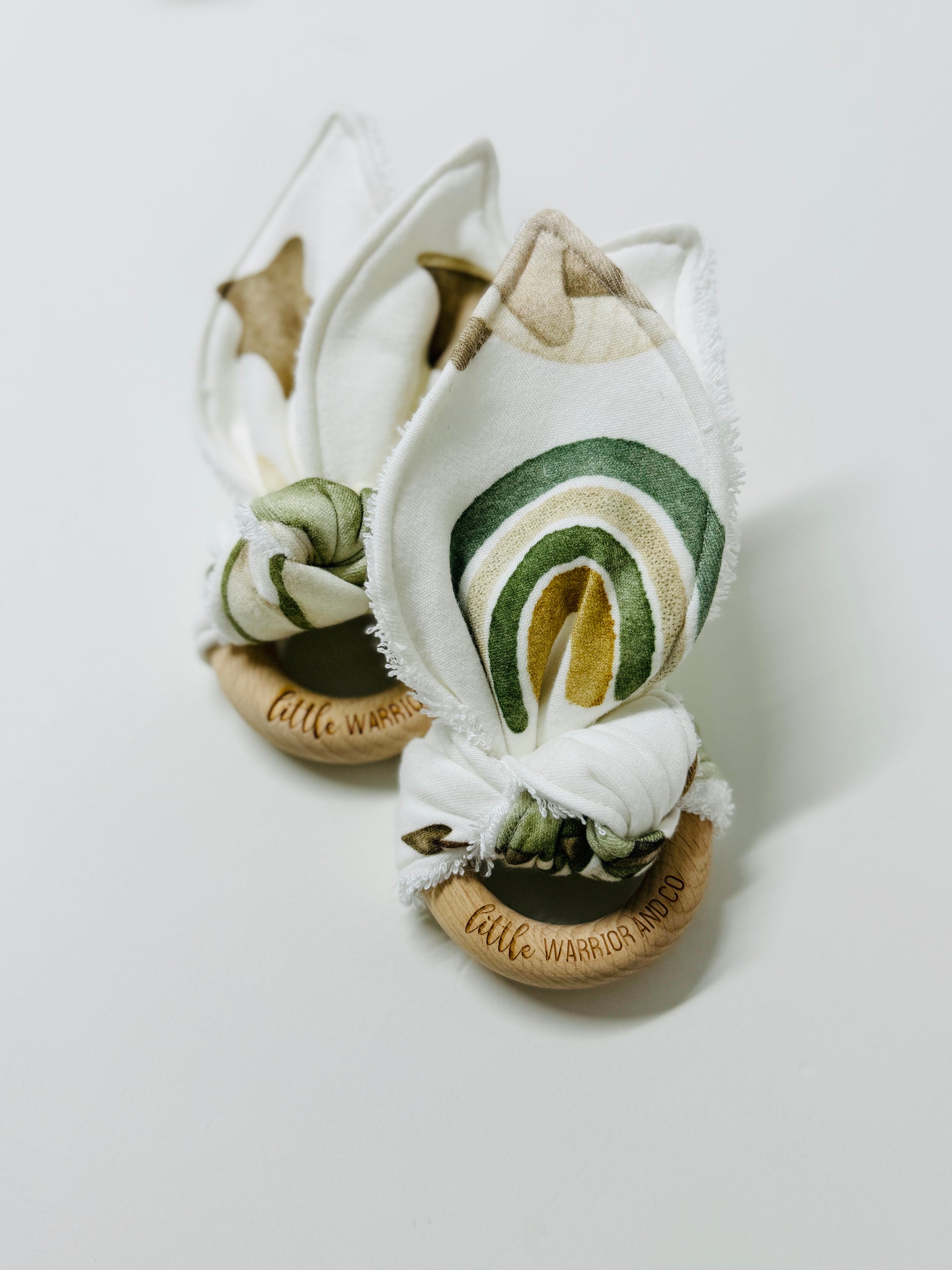 For Little Warriors that prefer to chew on fabric, let us help you do it in style. Securely and stylishly fastened onto our antibacterial raw wood rings, our fabric teethers help to soothe those gums and provide relief.
