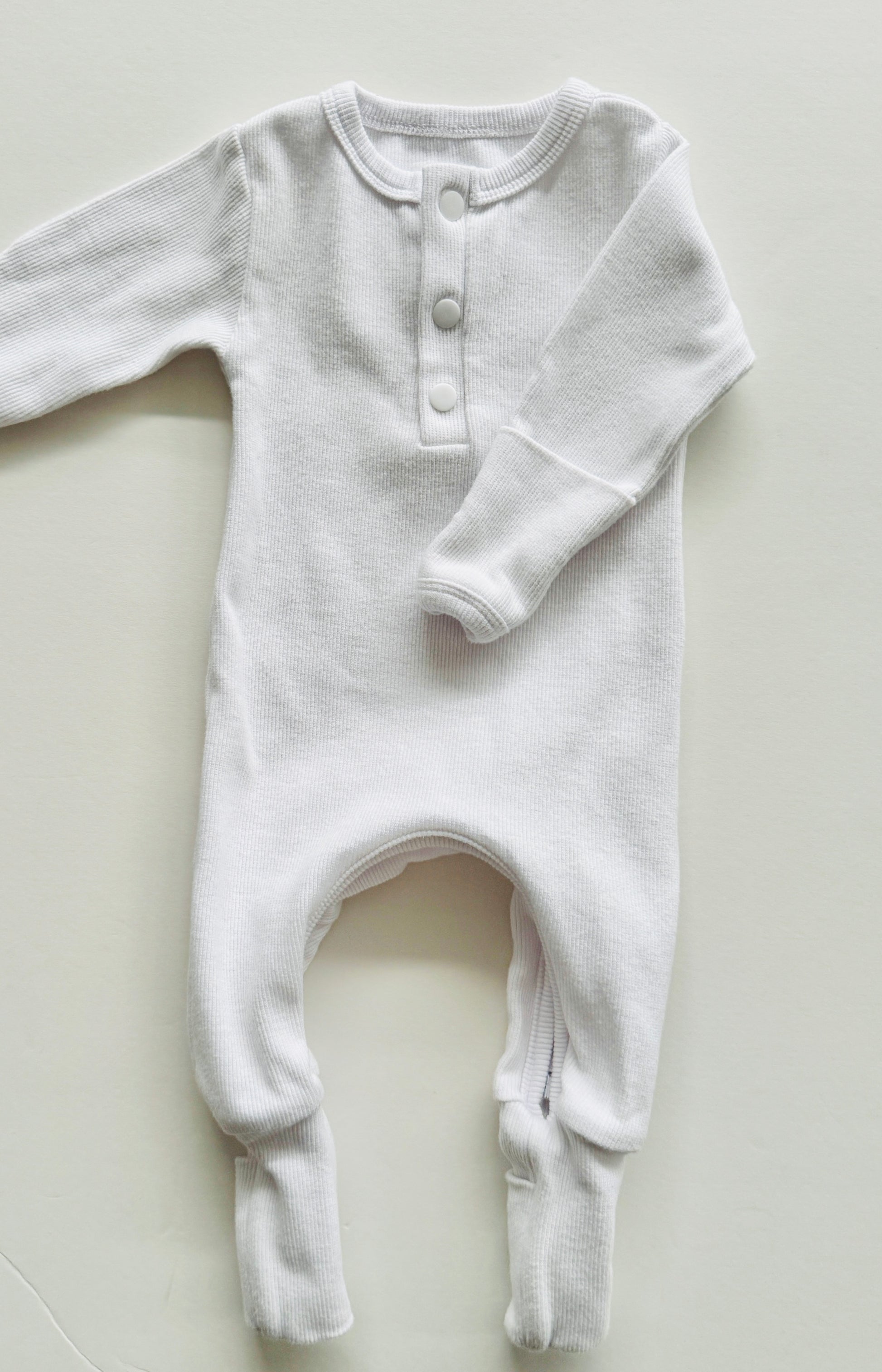 The design includes a hidden zipper that runs from ankle to ankle inside the leg, making nappy changes a breeze without disturbing your baby’s comfort. It also simplifies dressing—just scrunch up the fabric from the bottom and slip it over their head.
